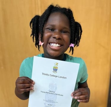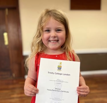 Children also have the opportunity to take part in Trinity Drama Exams and gain recognition for the skills they have learnt in class. This is an additional activity to our regular classes where students attend an exam session on a weekend. It doesn't require weekly 1-1 sessions and it's a great way to build confidence in an exam setting.
