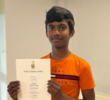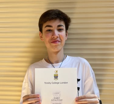 Children also have the opportunity to take part in Trinity Drama Exams and gain recognition for the skills they have learnt in class. This is an additional activity to our regular classes where students attend an exam session on a weekend. It doesn't require weekly 1-1 sessions and it's a great way to build confidence in an exam setting.